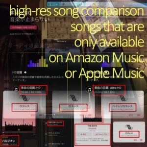 • Apple Music/Amazon Music両方でハイレゾで聴ける曲もある